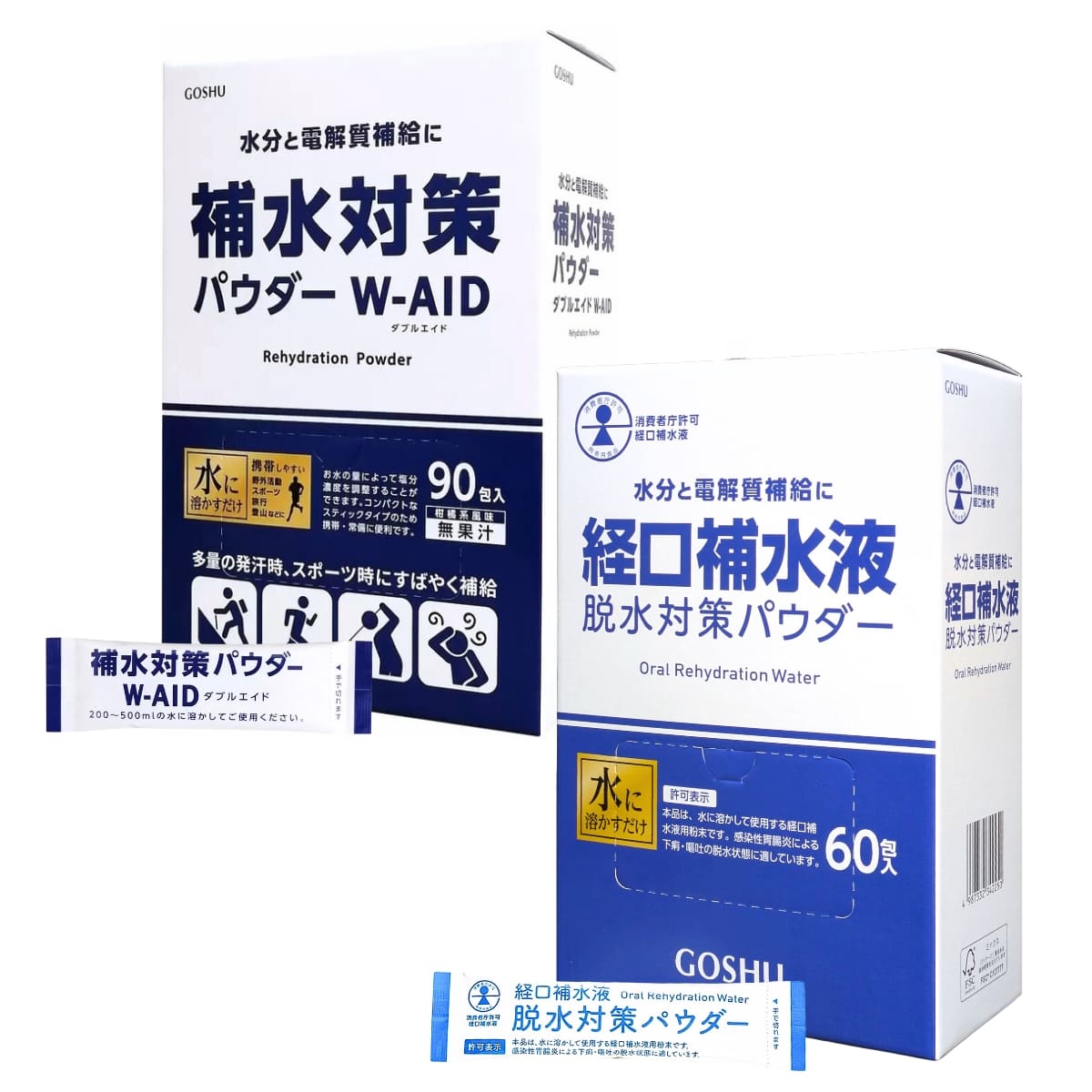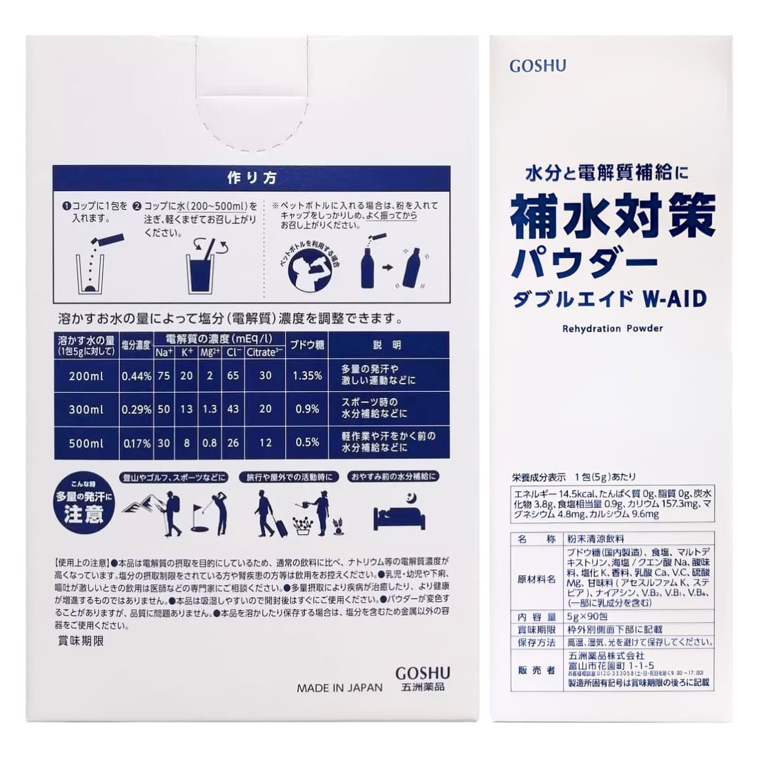 【粉末清涼飲料】選べる2タイプ GOSHU 経口補水パウダー W-AID(ダブルエイド) 5g×90包 #59238 | 経口補水液 脱水対策パウダー 消費者庁認可 7g×60包 #71091 日本製 五洲薬品 携帯 スポーツ 旅行 登山 熱中症対策 備え 介護 日常ケア