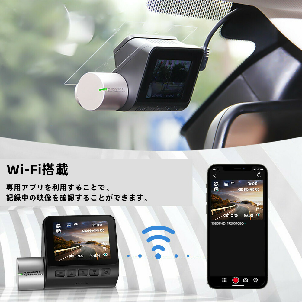 【仕様】解像度:フロント2K +リア1080Pチップセット:NOVATEK NT96675イメージセンサー: ソニー IMX415【セット内容】ドライブレコーダー本体 、シガープラグ型USB充電器 、静電シート 、ケーブル 、リアカメラ 、説明書、32GBカード【商品説明】170°広角:170°広角レンズを採用し、広い範囲を記録できます。WIFI対応:専用アプリを利用することで、記録中の映像を確認することができます。360回転機能:フロントカメラは360回転機能により、車内での記録が可能になります。多機能サポート:Gセンサー搭載、ループ録画など、多種なニーズに応えることができます。