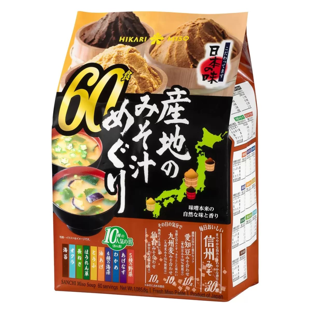 インスタント味噌汁 ひかり味噌 産地のみそ汁めぐり 60食 即席みそ汁 信州みそ,仙台みそ,愛知豆みそ,九州麦みそ #57651 実用的