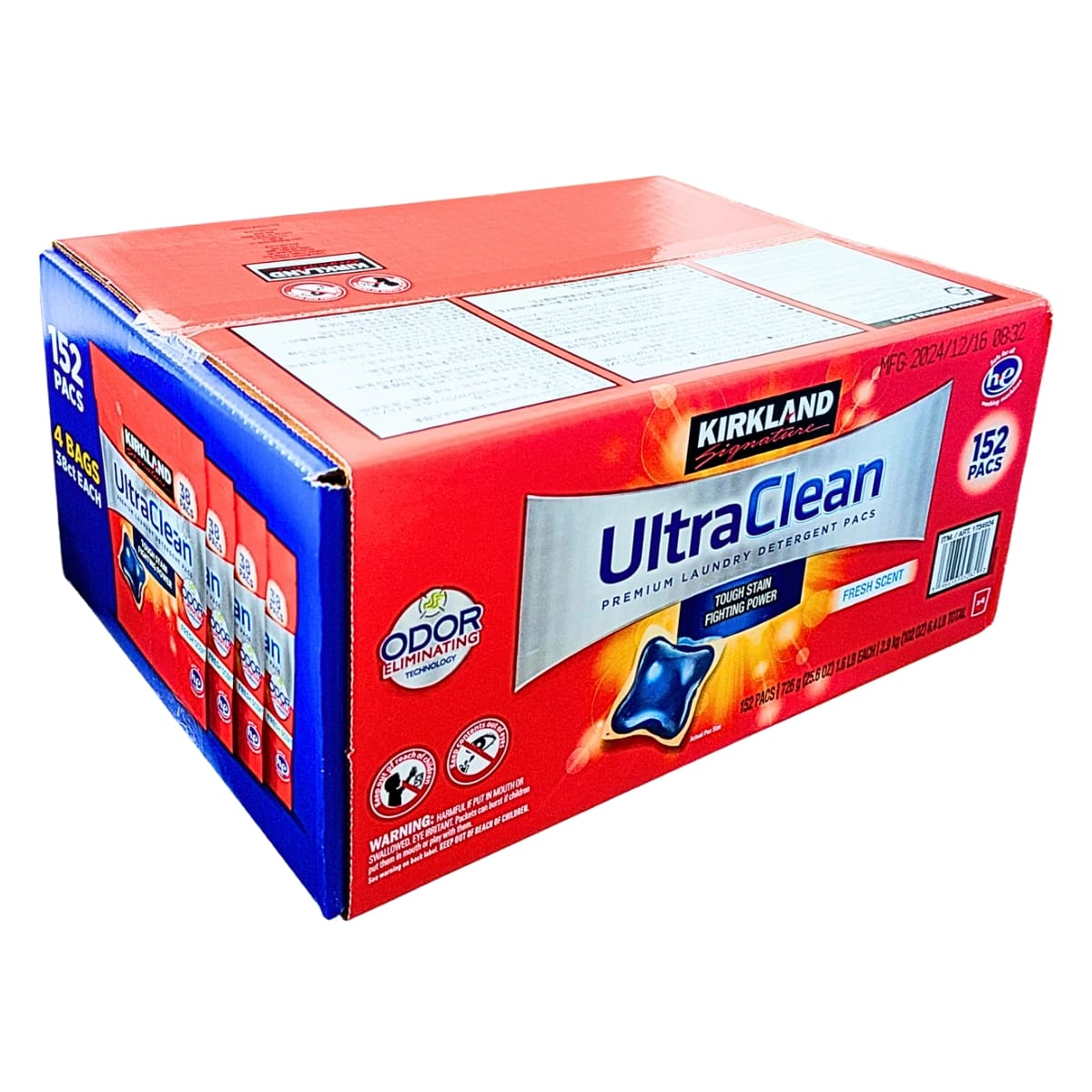 カークランドシグネチャーの人気洗濯洗剤 「ウルトラクリーンランドリーパック」は 洗浄力・消臭力・利便性を兼ね備えたジェルボールタイプの高性能洗剤です。