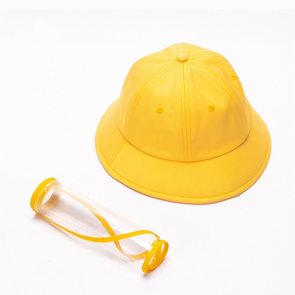 子供用フェイスカバー付きスクールハットです。取り外せるタイプなので、フェイスカバーの消毒も簡単です。