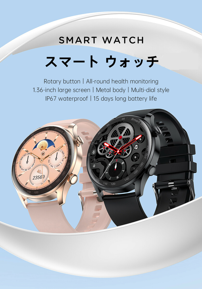 スマート ウォッチ AK32 スポーツ 活動量計 画面 1.36インチ 丸型タッチパネル LCDスクリーン サイズ:390*390 バッテリー:210mAh 15日間の長いバッテリー システム:iOS9.0以降、Android 4.4以降 アプリ言語:日本語対応 カラー3色