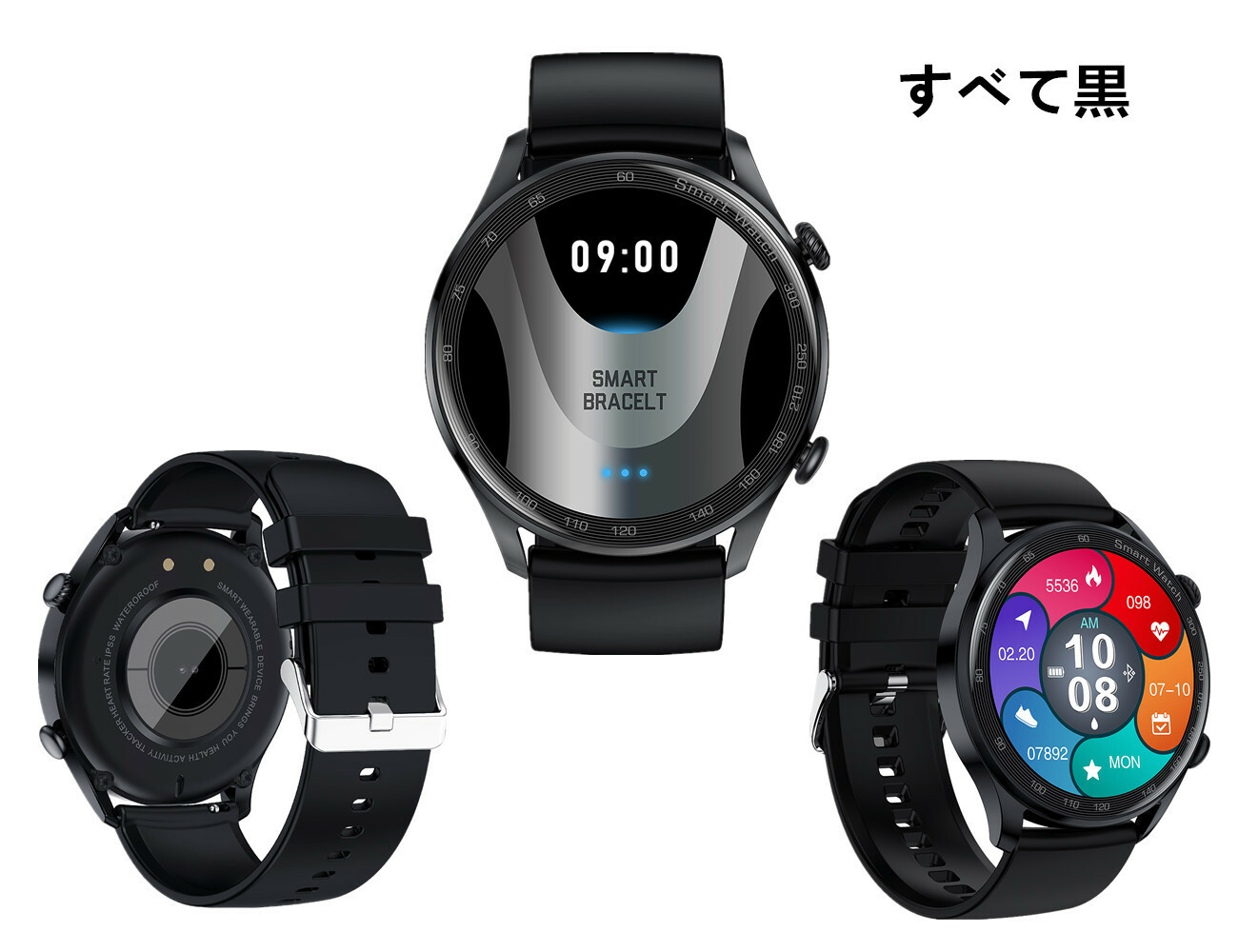 歩数計 来電/着信通知 長い待機時間 多種類文字盤 IP67防水 目覚まし時計 天気予報 音楽再生 長持ちバッテリー 3色