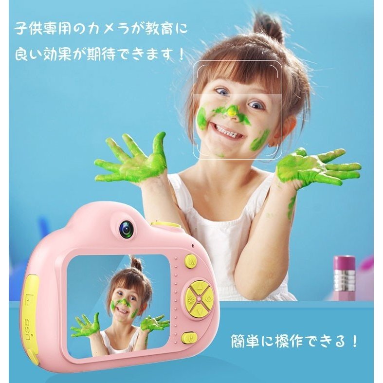 【操作簡単・プレゼントに最適】子供用デジタルカメラ:ワンタッチで撮影できる!。多様な付属品が同梱される可愛いパッケージで、誕生日、クリスマス、正月、入学のプレゼントとして最もオススメです。
