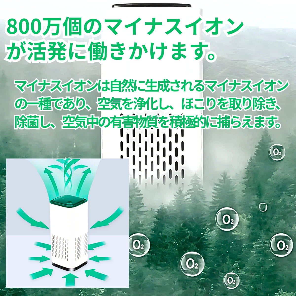・高濃度800万個のマイナスイオンで空気中の有害物質をしっかり浄化
