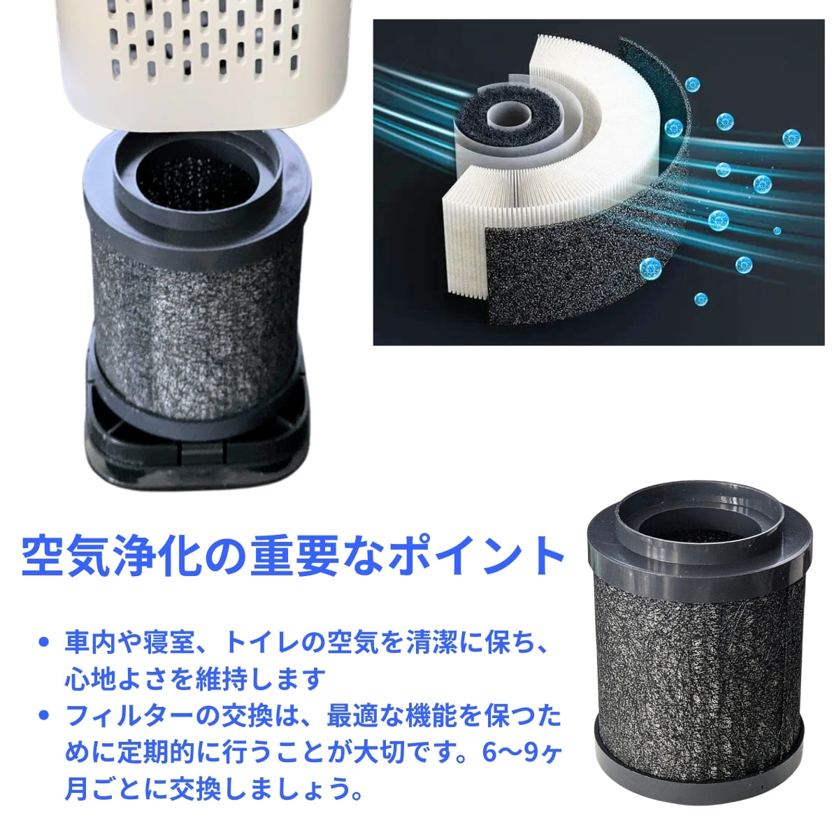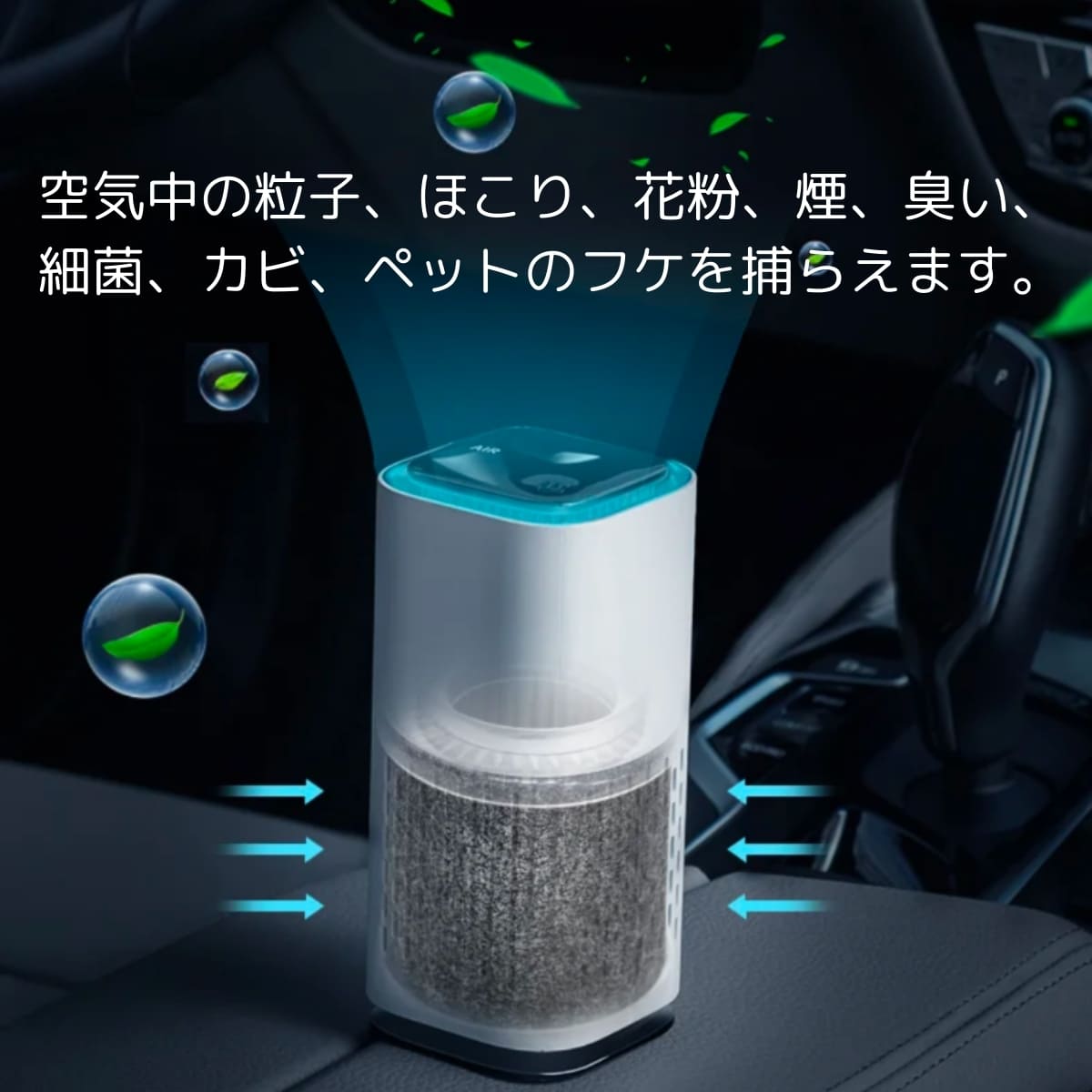 多層フィルター(トリプルクリーン)搭載で、まずは大きな粒子を取り除き、次に微細なホコリを吸着し、最後に悪臭や有害ガスを浄化。これにより、車内や寝室などの空気を徹底的に清浄化します。