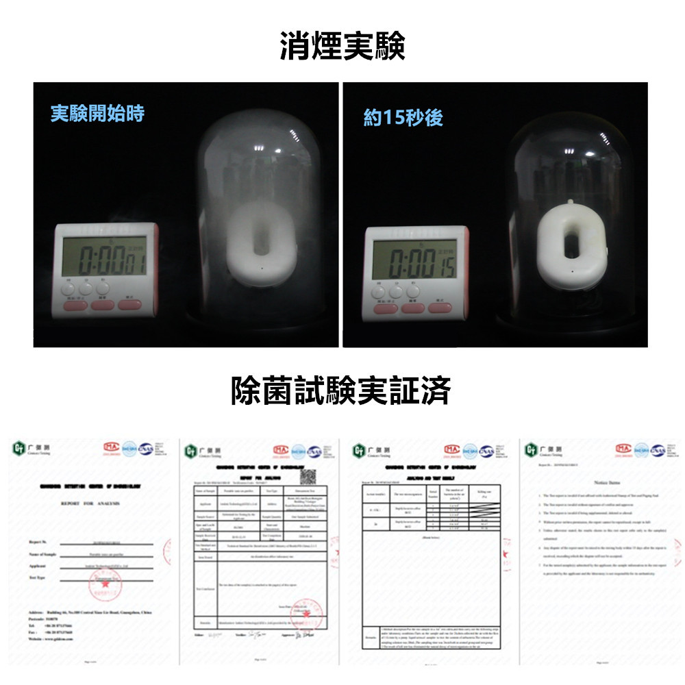 500万高濃度マイナスイオンと0.0014ppmの超微量オゾンによって、顔周辺の花粉、たばこの煙、細菌、PM2.5などを排除できます。除菌率は93.38%です。