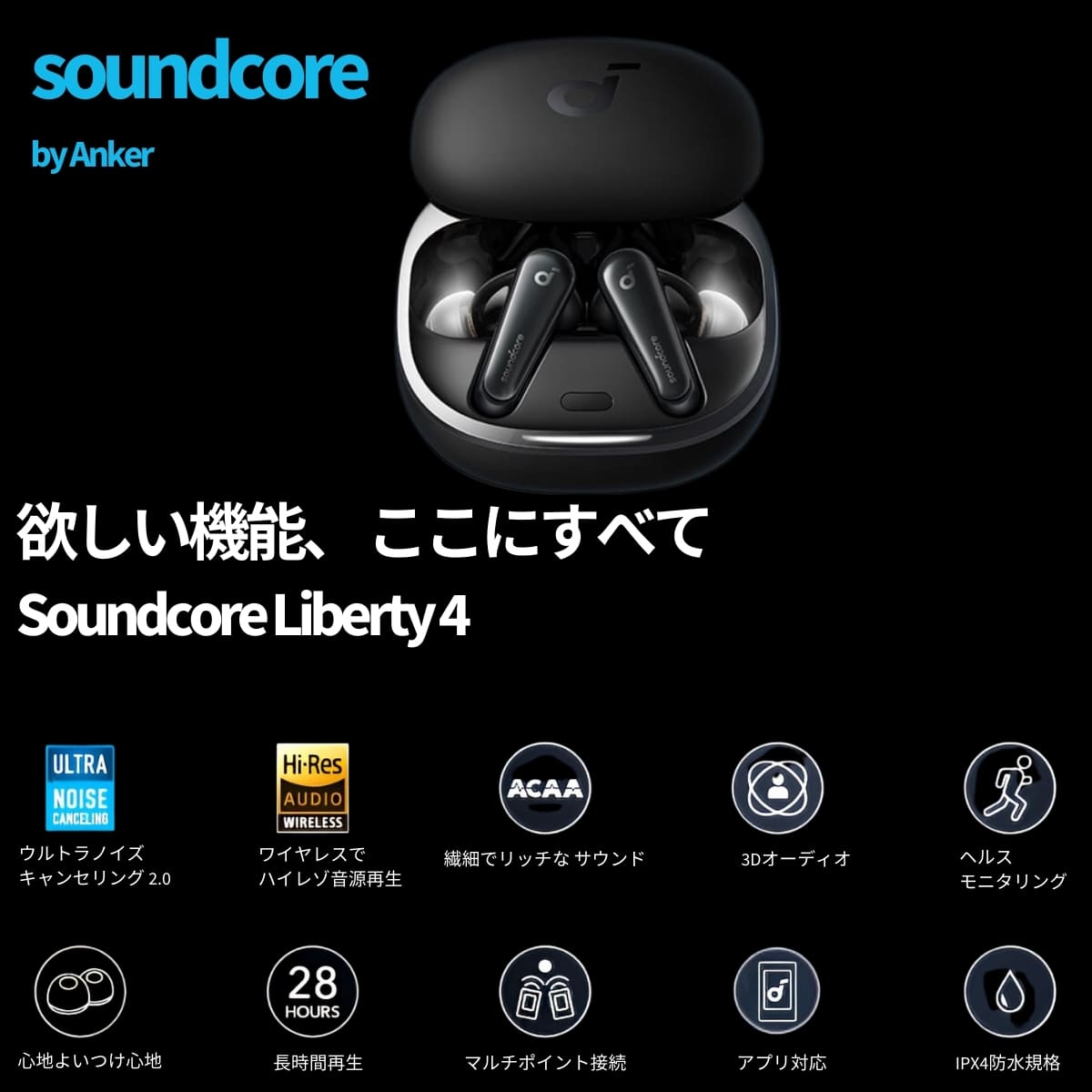 Soundcore Liberty 4 完全ワイヤレスイヤホン (ミッドナイトブラック)
