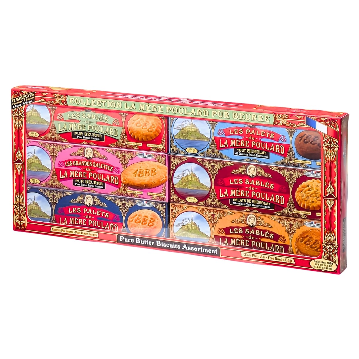 LA MERE POULARD GIFT BOX は、フランス発のクッキーやビスケットのアソートセットです。6種類の味わいが楽しめるギフトボックスになっています。チョコレートショートブレッド、ピュアバタービスケット・チョコチップ、ピュアバターショートブレッドなど、バターの豊かな本格的な焼き菓子の詰め合わせ。